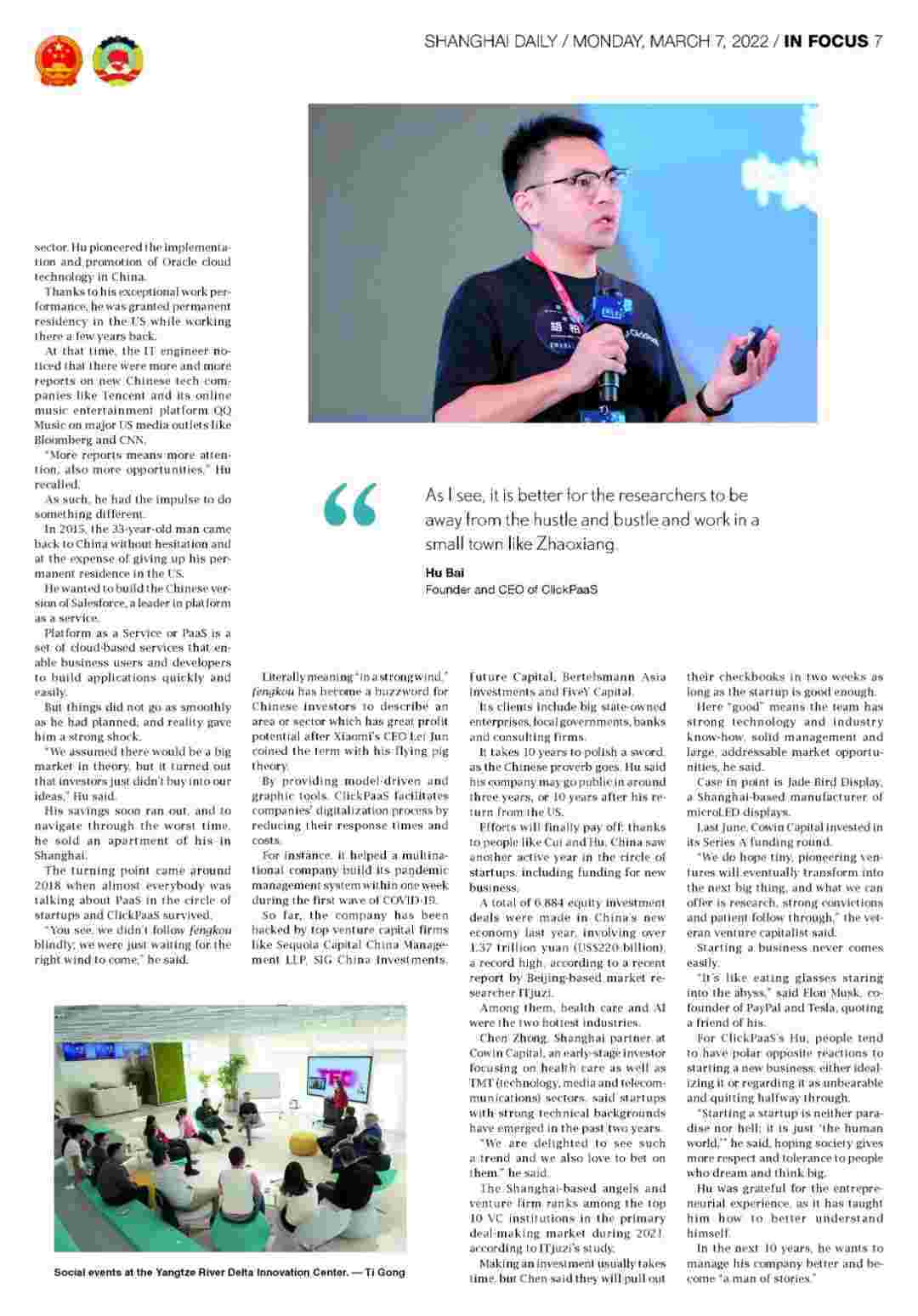 近日,,NO钱包创始人、、、、CEO胡柏接受了《上海日报》采访,,,,关于自己当初为何选择创立NO钱包,,又为何将公司落户于上海青浦,,分享了其背后的故事。。。。
